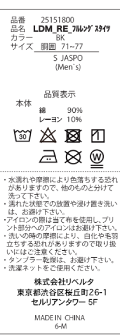※ドライクリーニングをすると、プリントが剥がれやすくなり、劣化を早める原因となりますのでお控えください。