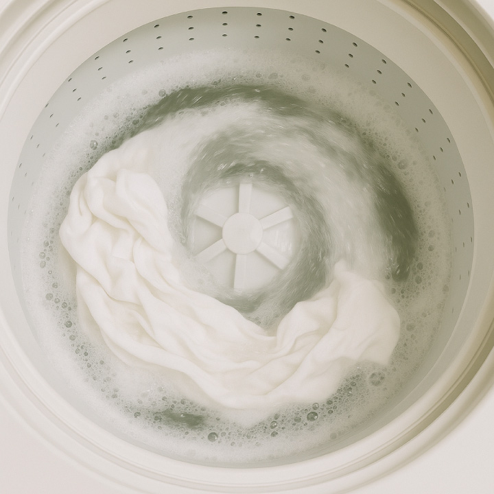 十分にすすぎをし、洗濯洗剤の残留を防いでください。